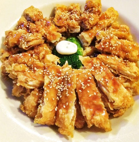 Tender, crispy chicken tossed in a sweet and savory sesame glaze, topped with toasted sesame seeds.